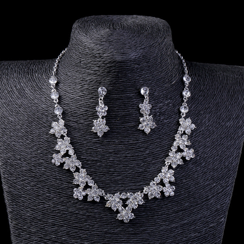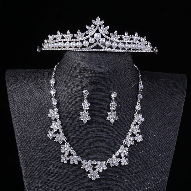 • 3-piece bridal jewelry set (Crown + Necklace + Earrings)